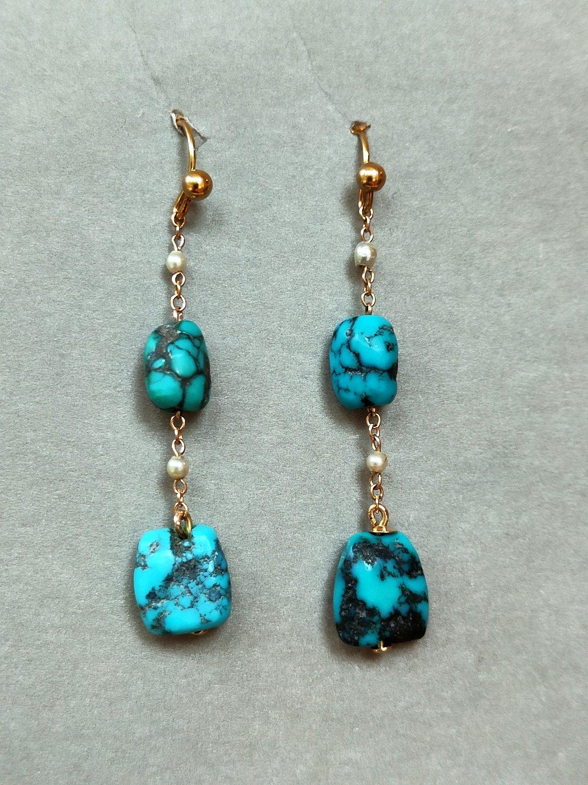 Victorian 9ct Gold Turquoise Pearl Earrings (1 of 10)
