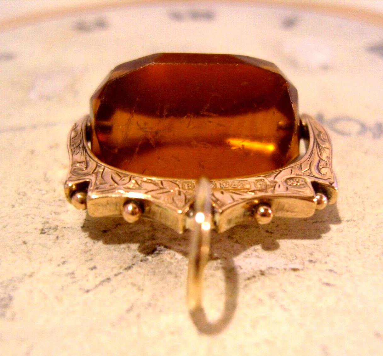 Victorian 9ct Rose Gold Pocket Watch Chain Swivel Fob 1900 Large Citrine Fob