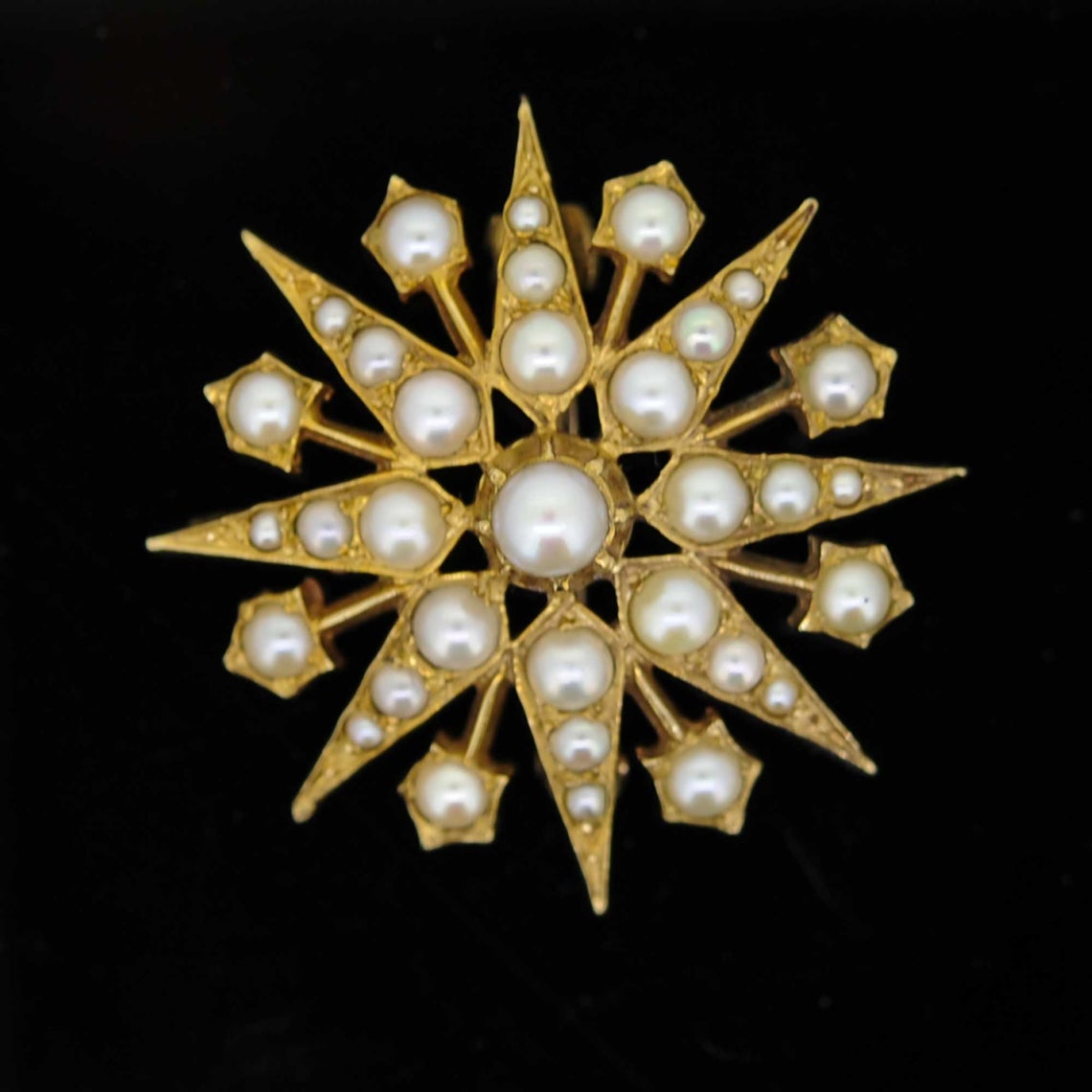 Victorian 9ct Yellow Gold Star-Burst Pearl Brooch
