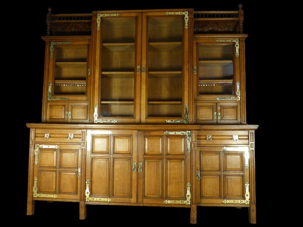Victorian Aesthetic Movement Oak Breakfront Library Bookcase