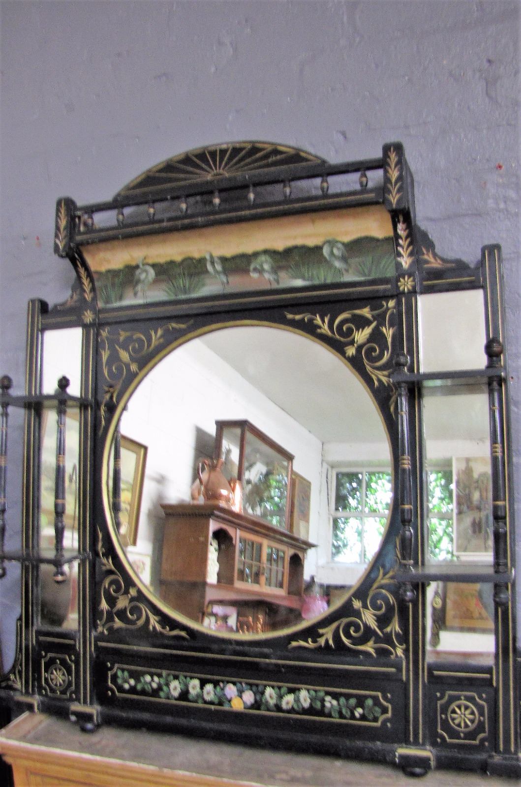 Victorian Aesthetic Period Ebonised Overmantle Mirror