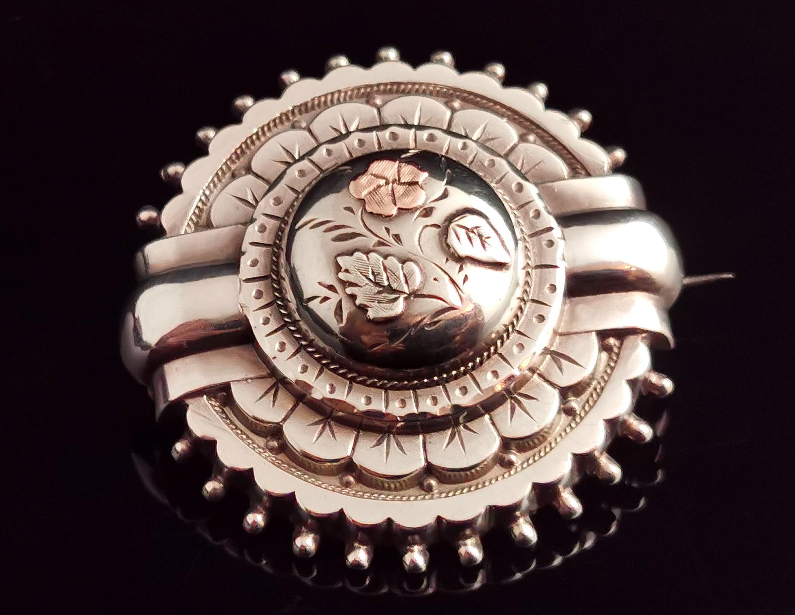 Victorian Aesthetic Silver Locket Brooch, Rose Gold, Floral