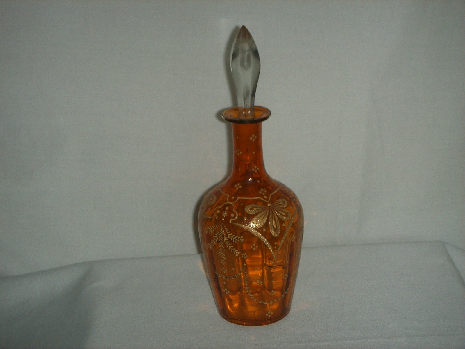 Victorian Amber Coloured Perfume / Cologne Bottle with Stopper