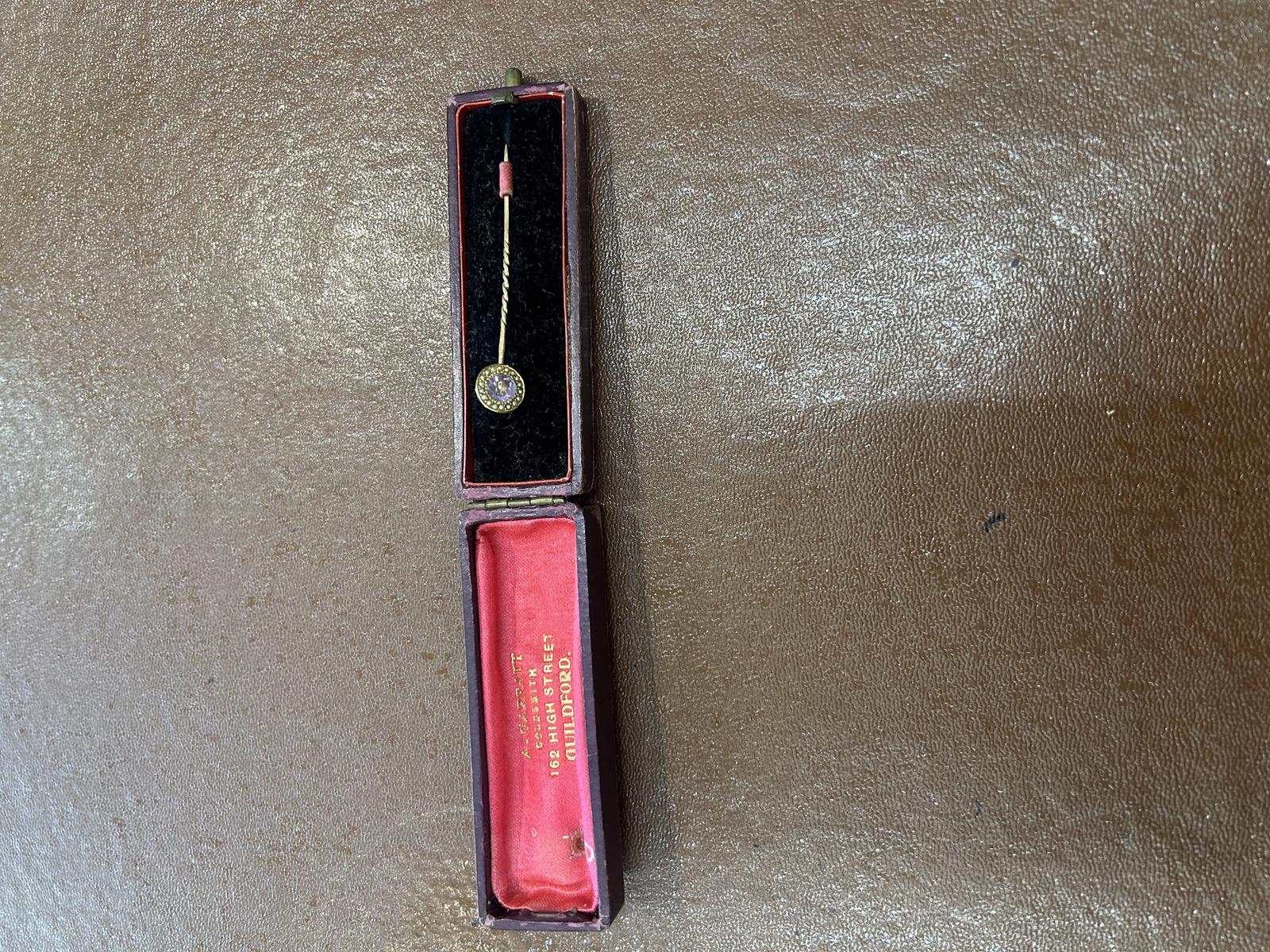 This Victorian Amethyst & Seed Pearl Cluster Stick Pin is located in Lincolnshire, United Kingdom