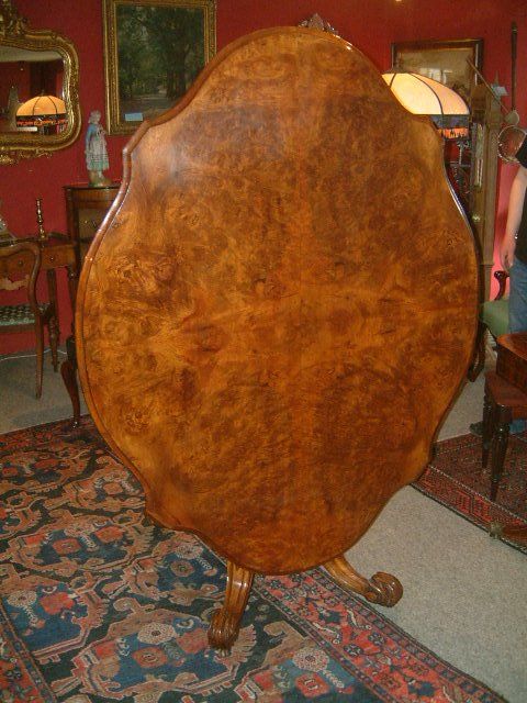 Victorian Antique Burr Walnut Pedestal Dining Table