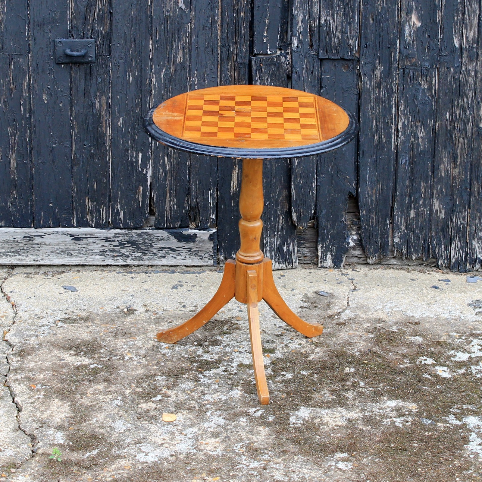 Victorian Antique Circular Table with Inlaid Chess or Draughts Board