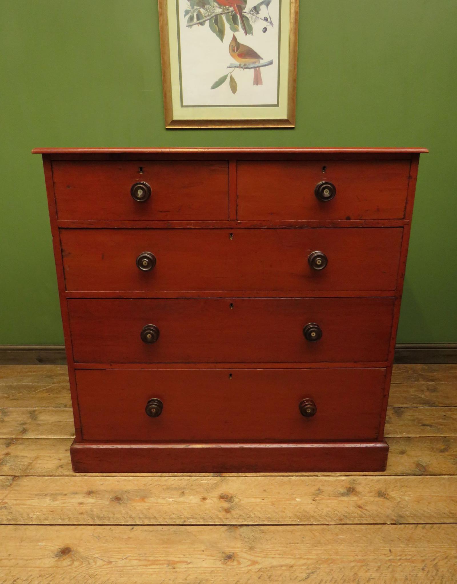 Victorian Antique Large Red Stained Pine Chest of Drawers, Original Ochre Finish
