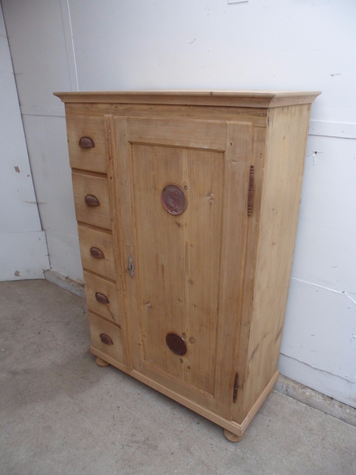 Victorian Antique Old Pine 5 Drawer Food Kitchen Cupboard