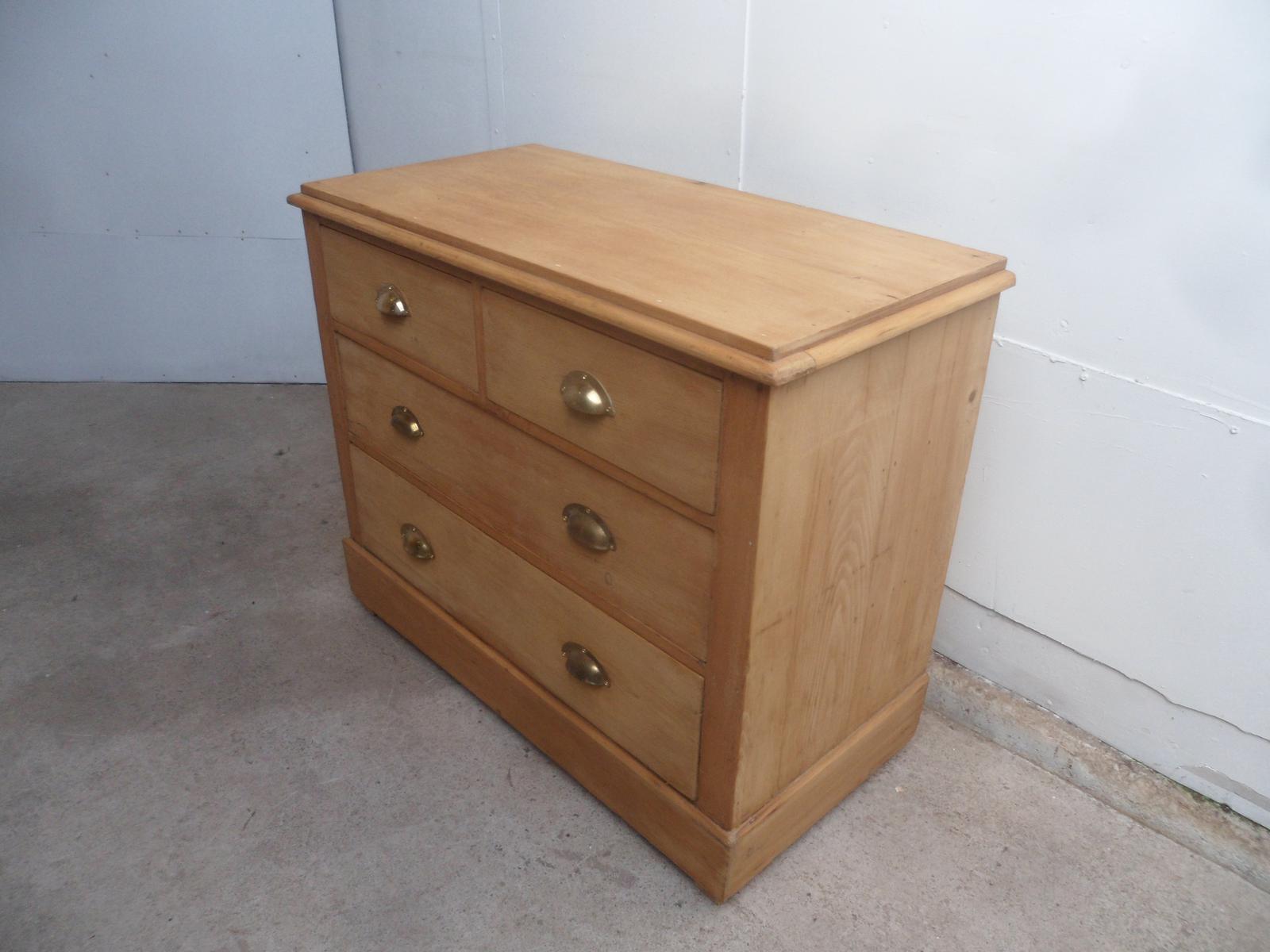 Victorian Antique Pine 4 Drawer Cup Handle Chest of Drawers to Wax / Paint