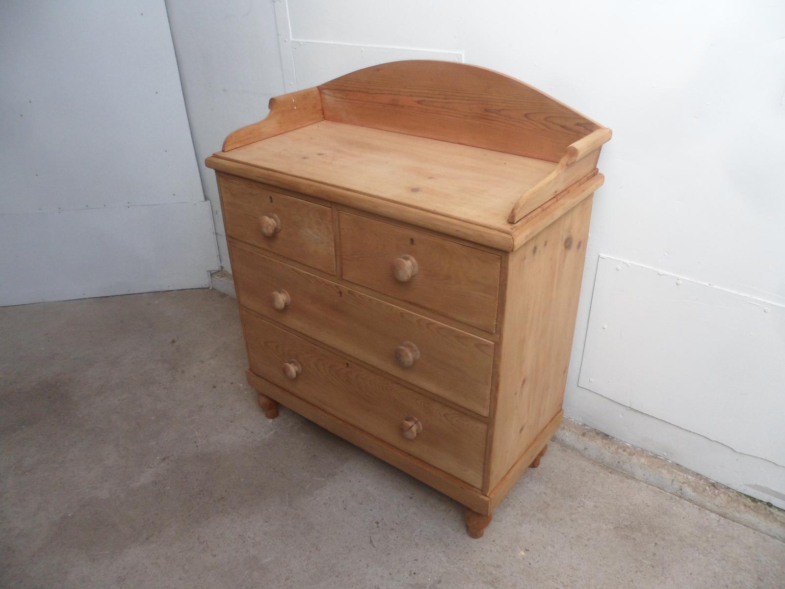 Victorian Antique Pine 4 Drawer Tray Top Chest of Drawers to Wax / Paint