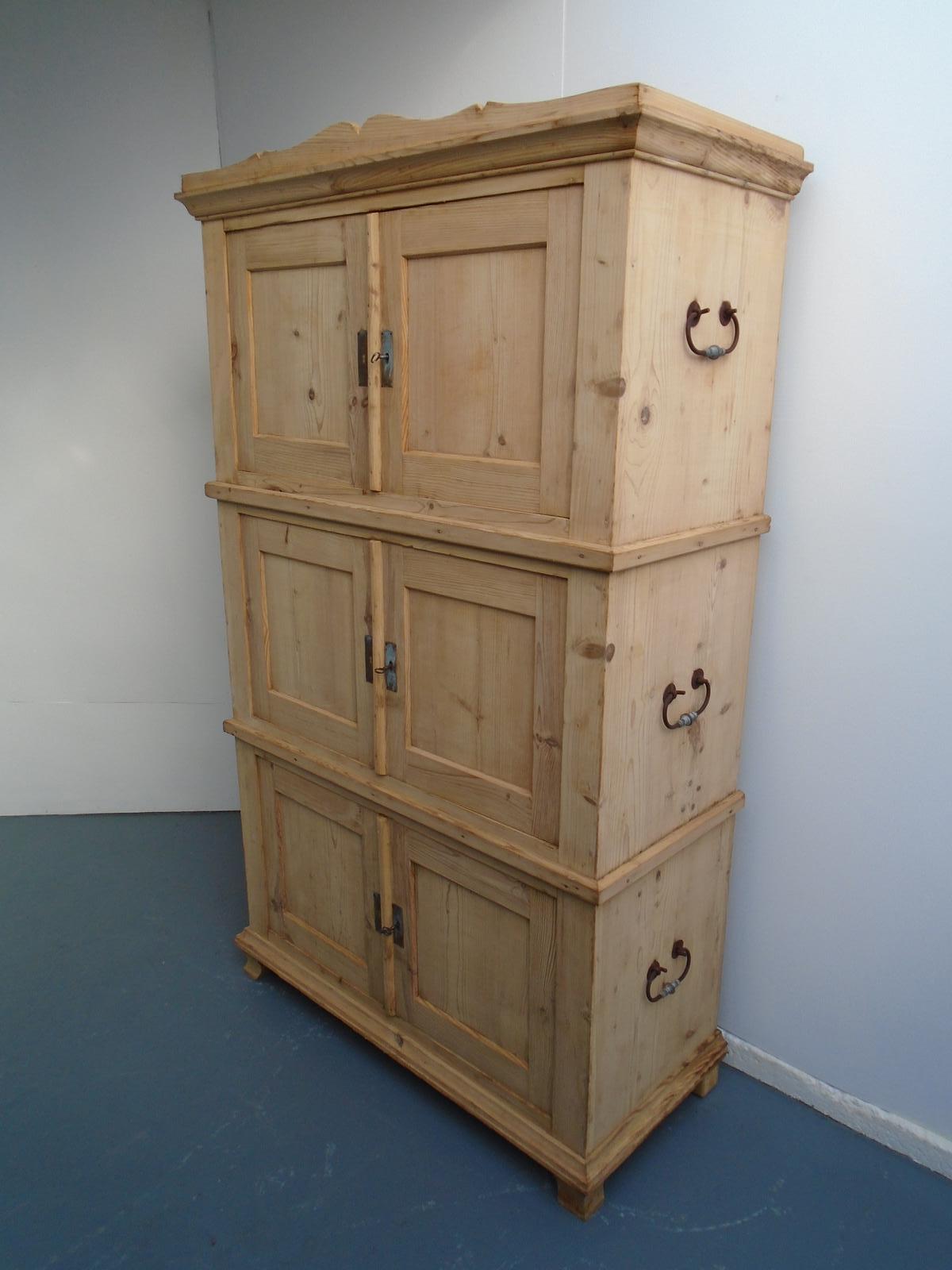Victorian Antique Pine 6 Door 3 Piece Storage Linen Cupboard to wax / paint