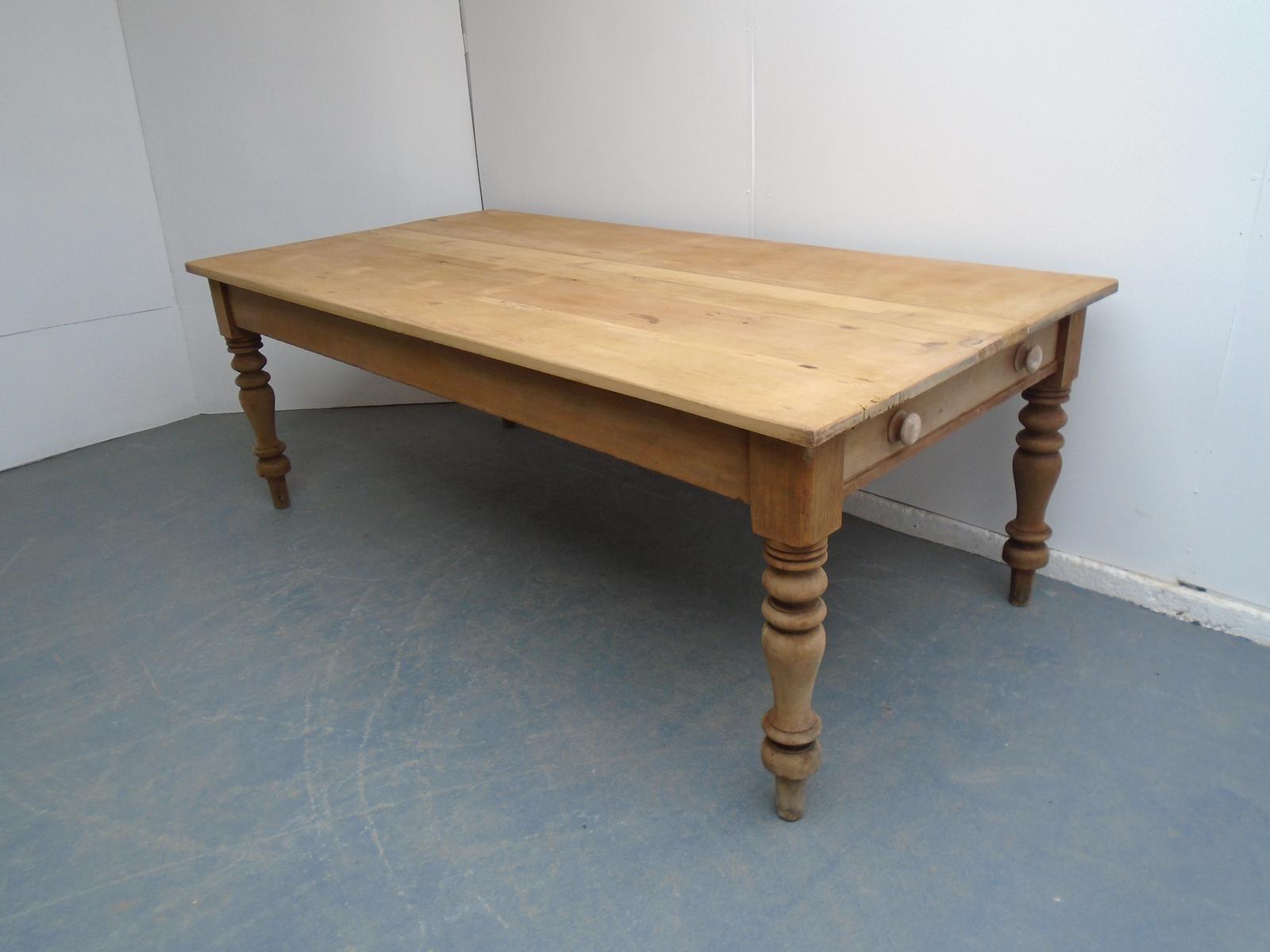 Victorian Antique Pine 7ft Scrub Top Kitchen Table / Desk to paint / wax