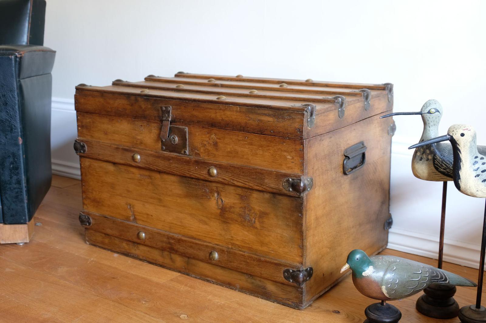 Victorian Antique Pine Chest with Brass Studs & Corners
