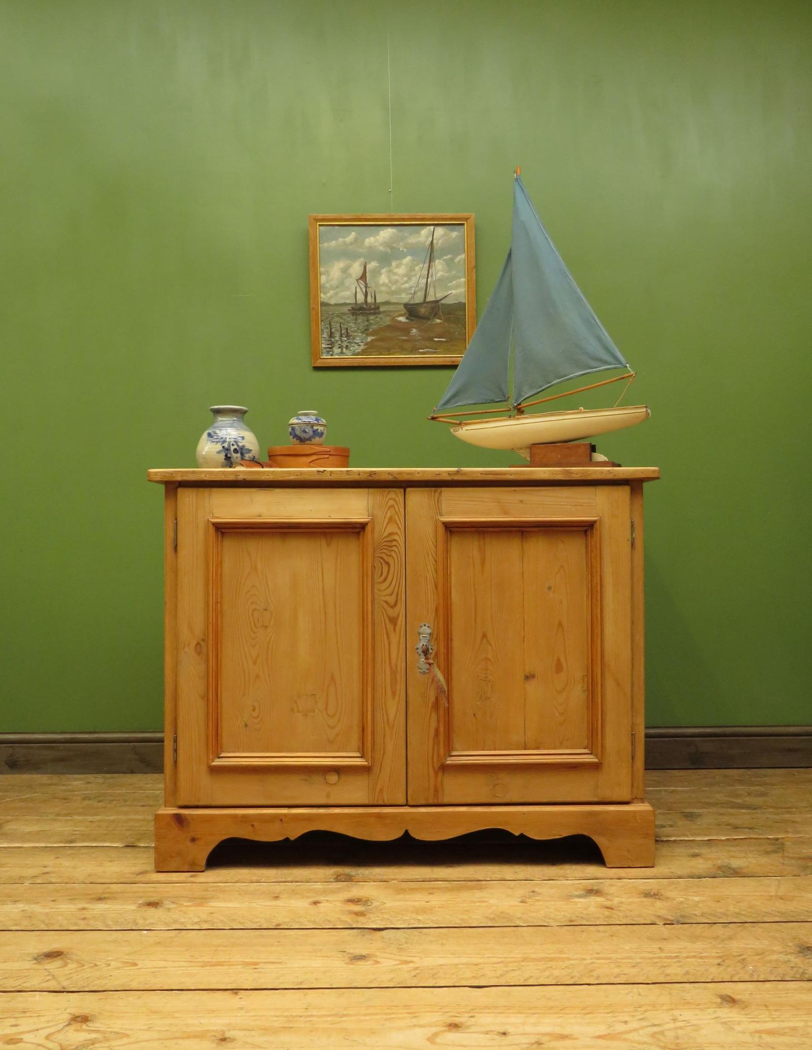 Victorian Antique Pine Cupboard with Double Doors, Lockable