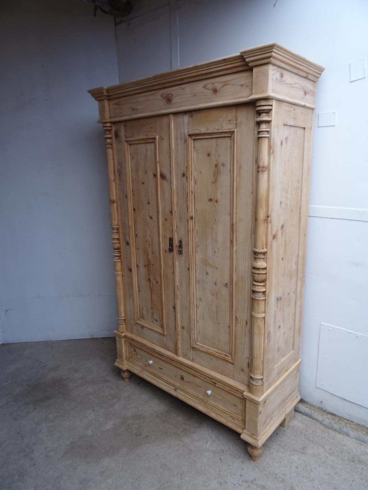 Victorian Antique Pine Knockdown Child's / Hall Wardrobe to wax / paint