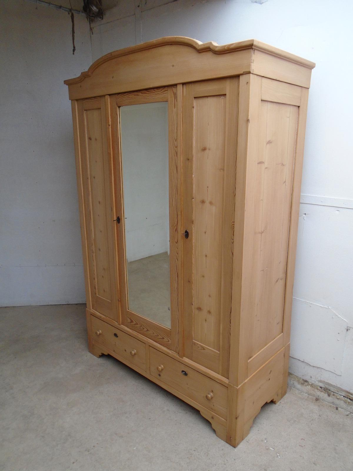 Victorian Antique Pine Triple Mirrored Knockdown Waxed Wardrobe