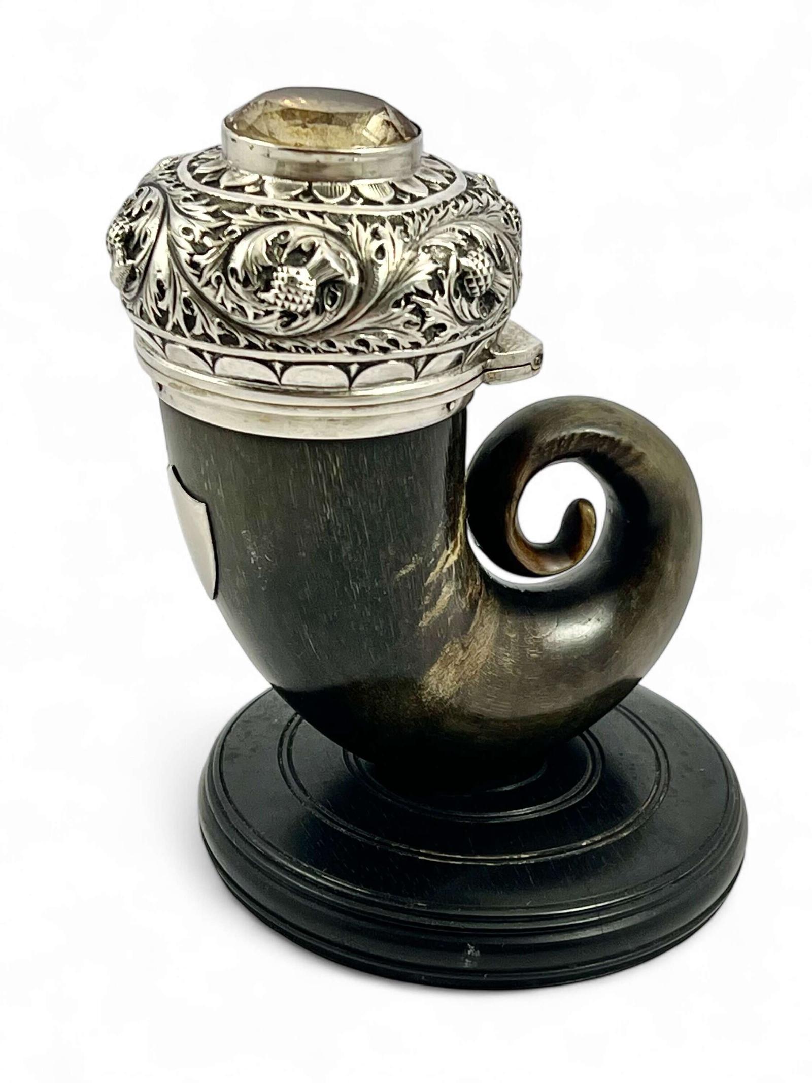 Victorian Antique Silver & Ram’s Horn Inkwell - Edinburgh 1893