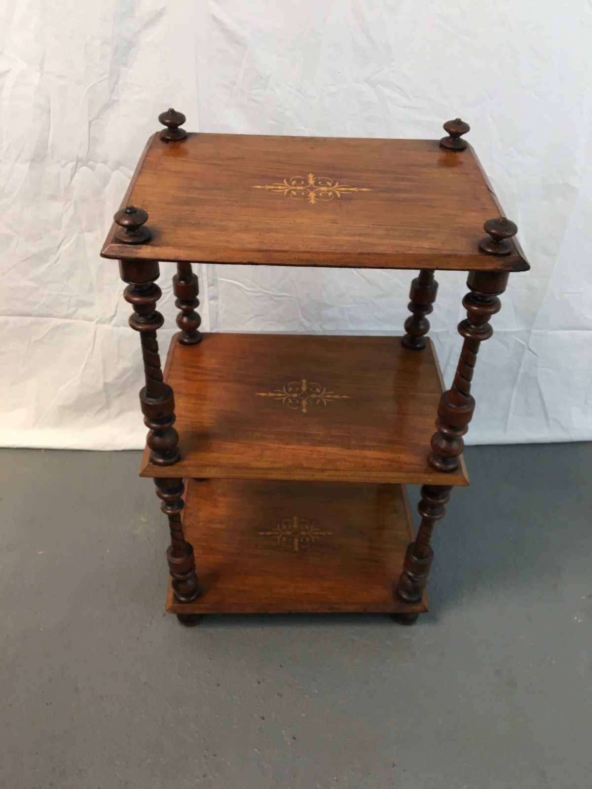 Victorian Antique Walnut Inlaid 3 Tier Whatnot - Shelving