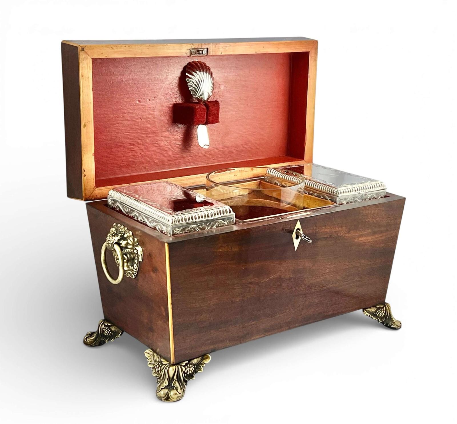 Victorian Antique Wooden Tea Caddy Box with Twin Silver Caddies, London 1862