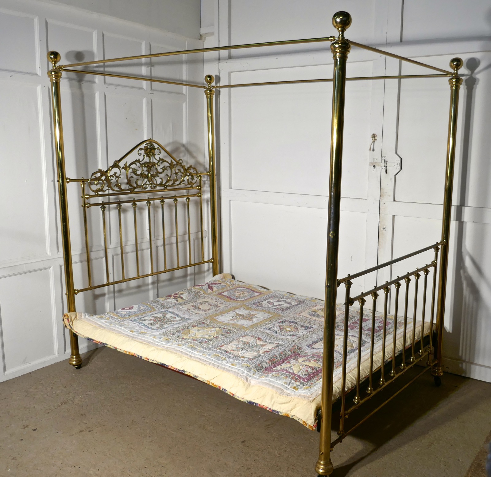 Victorian Art Nouveau 4 Poster Double Brass Bed