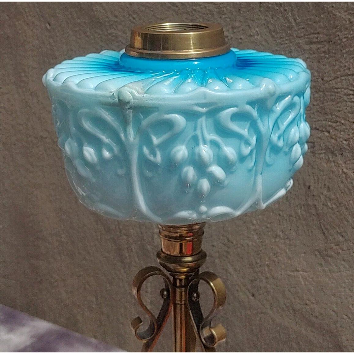 Victorian Art Nouveau Antique Moulded Turquoise Blue Opaline Glass Oil Lamp Font