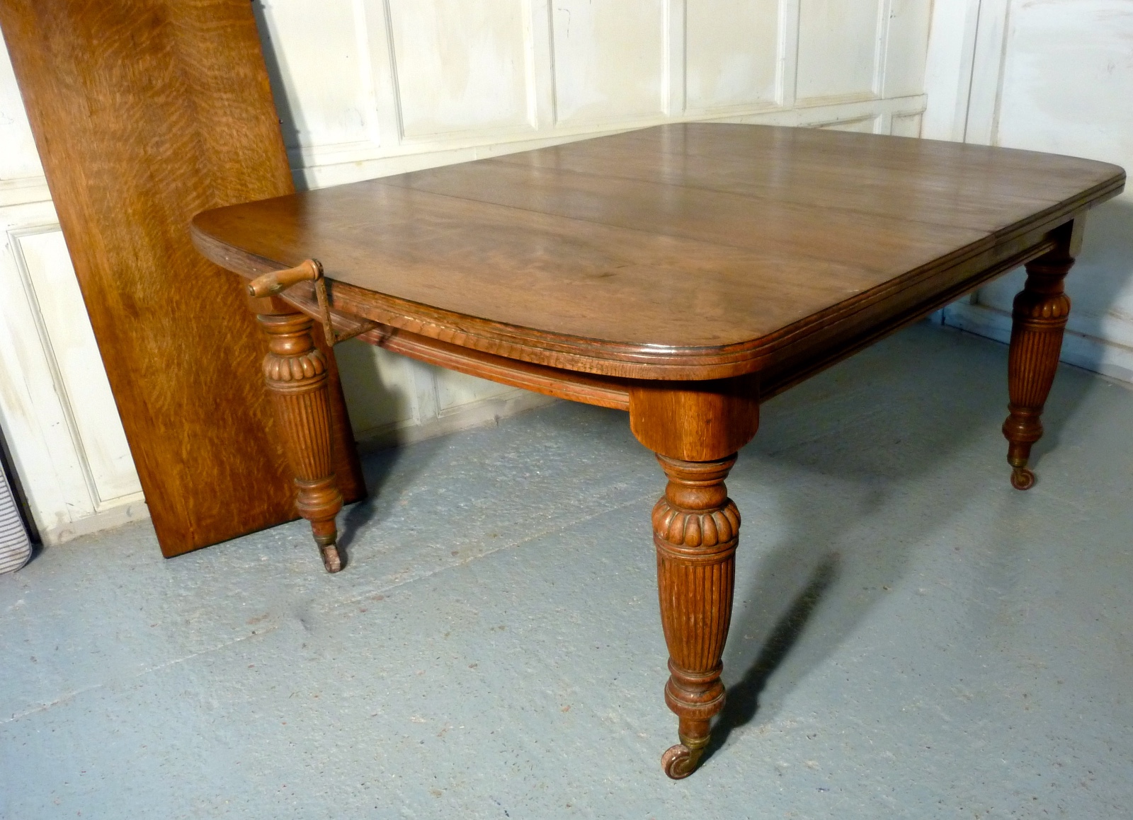 Victorian Arts & Crafts Golden Oak Wind Out Table / Extending Dining Table