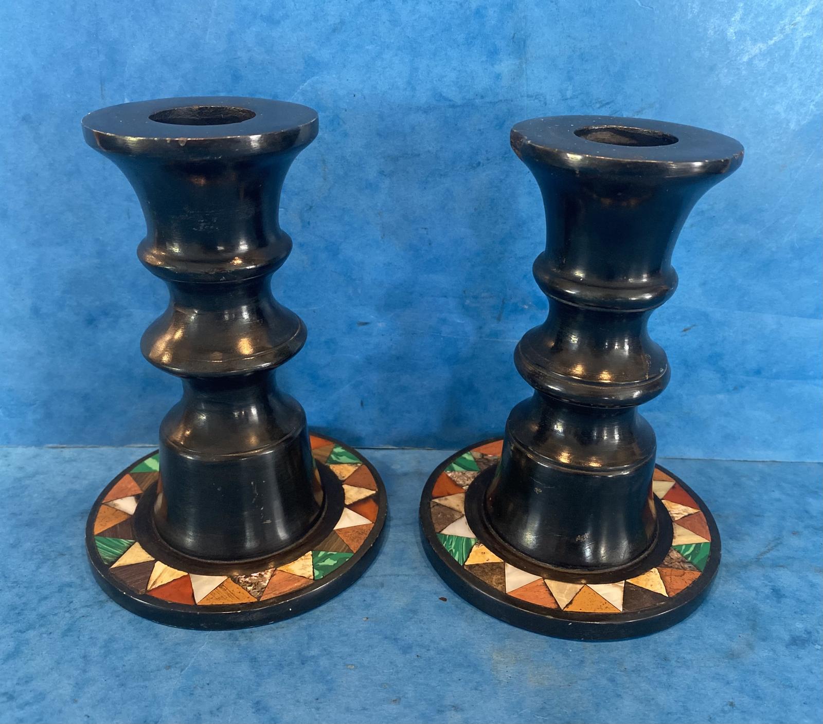 Victorian Ashford Derbyshire Pietra Dura Slate Candlesticks