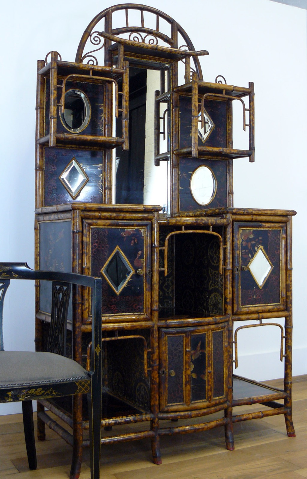 Victorian Bamboo Chinoiserie Panelled Antique Mirrored Cabinet c.1890