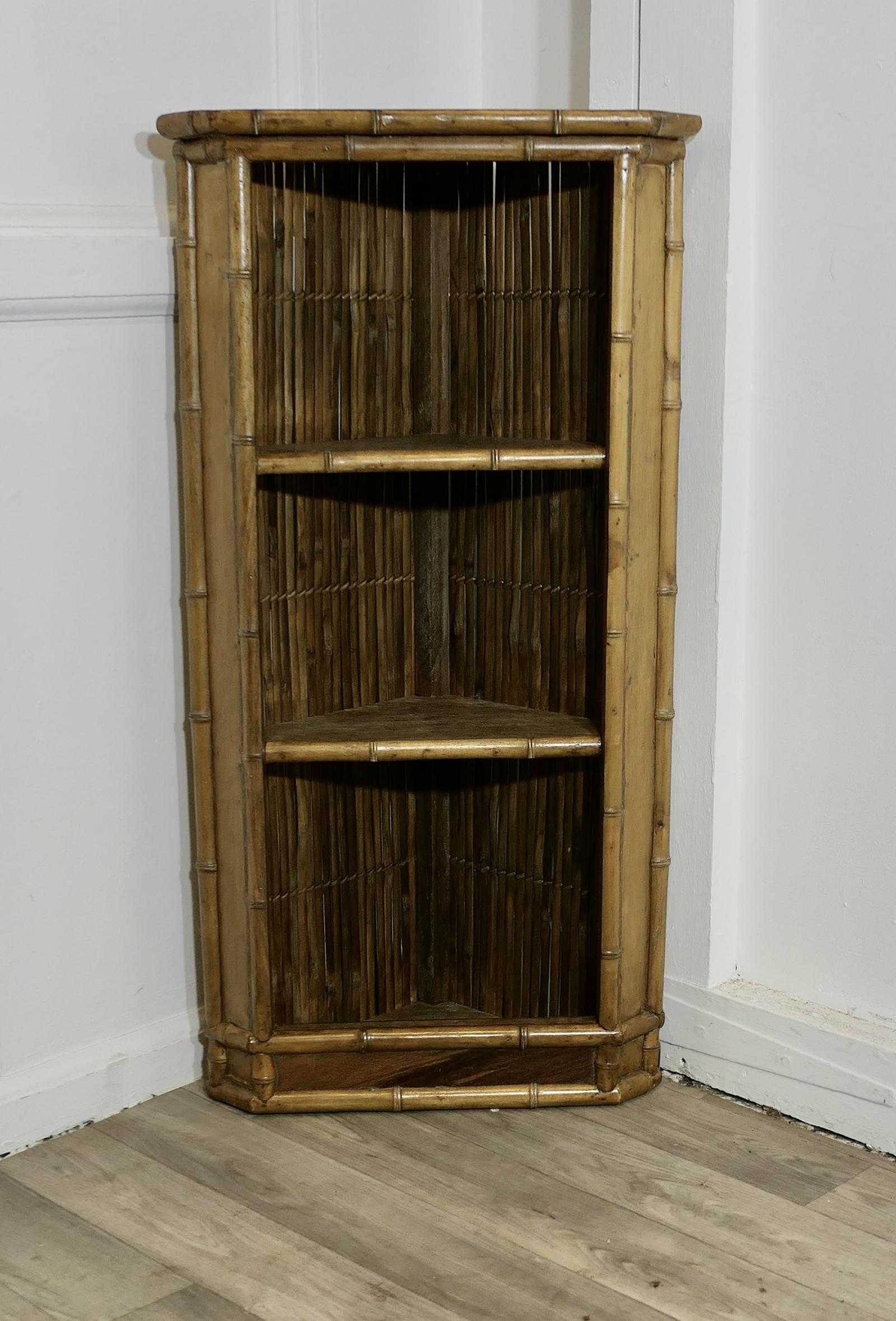 Victorian Bamboo Corner Unit with Open Shelves
