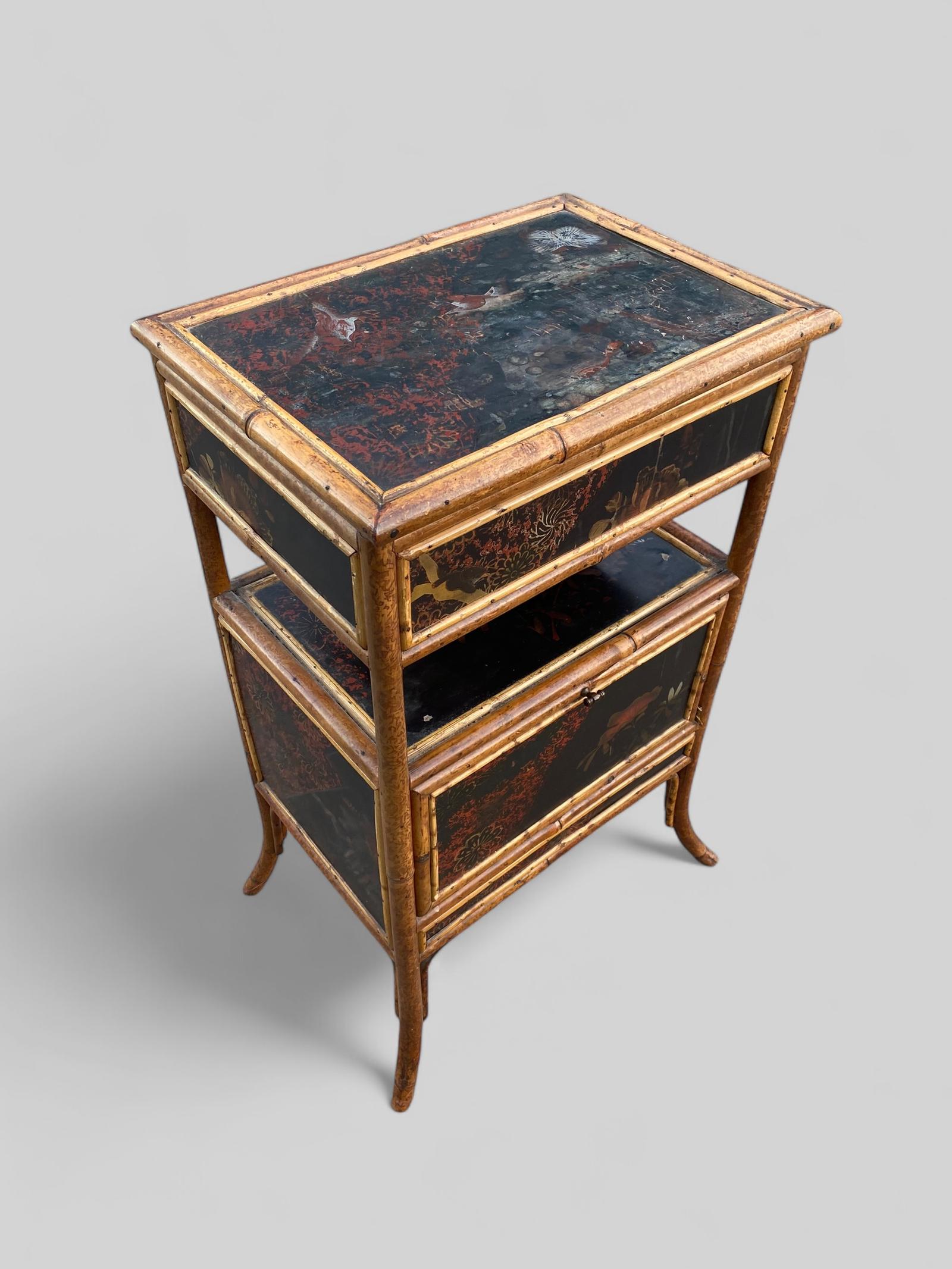 Victorian Bamboo Lacquered Sewing Cabinet