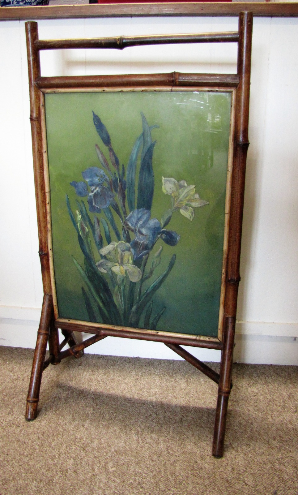 Victorian Bamboo Painted Glass Fire Screen