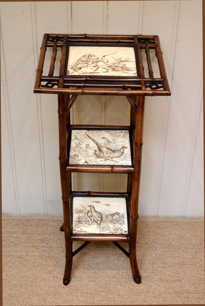 Victorian Bamboo Three Tier Tile Table, England c.1890 (1 of 1)
