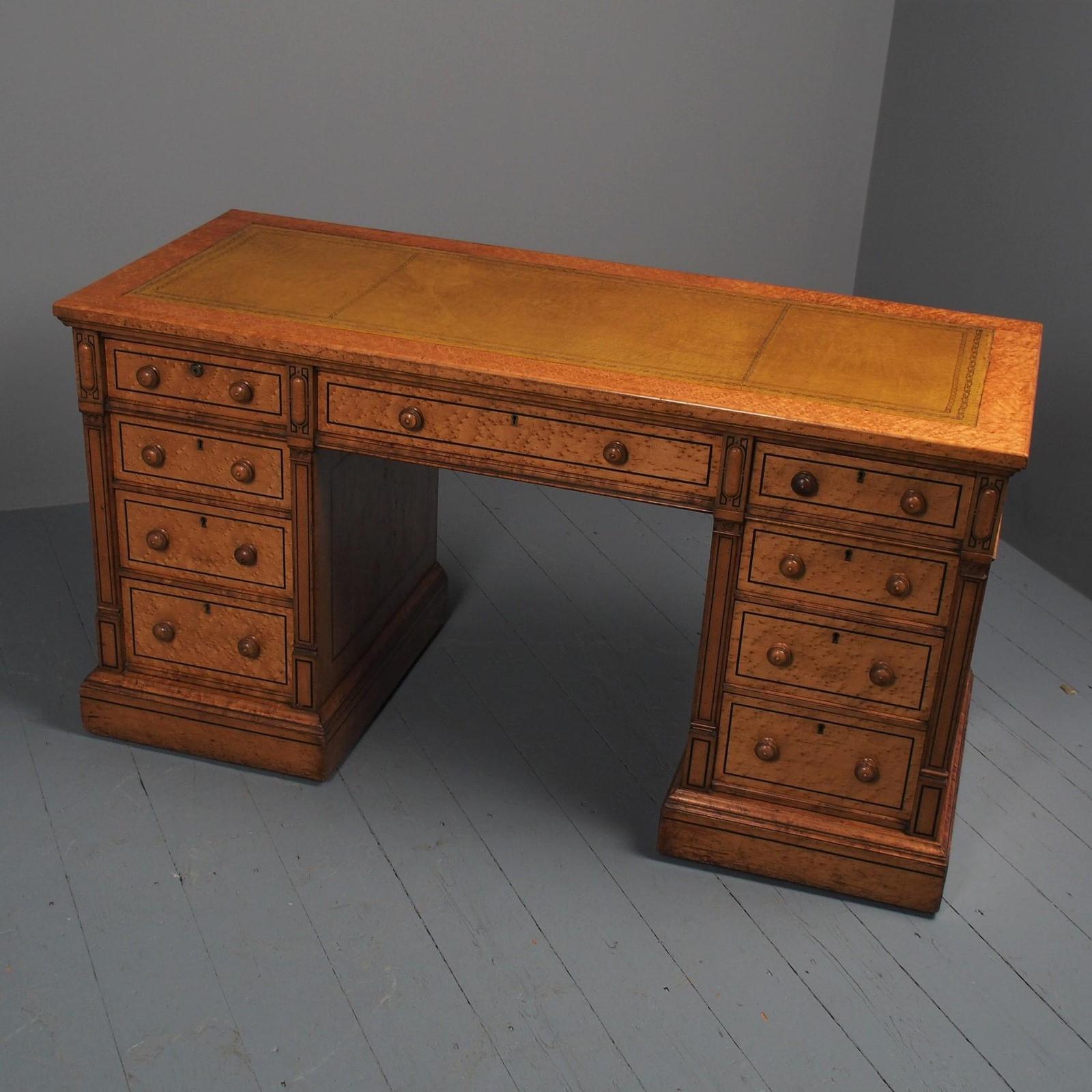 Victorian Birds Eye Maple Kneehole Pedestal Desk
