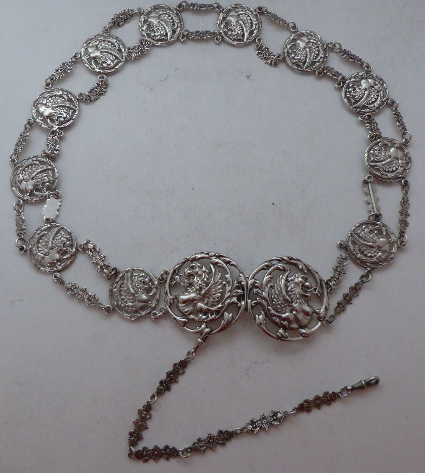 Victorian Birmingham 1897 Hallmarked Solid Silver Nurses Belt & Buckle Griffin Design