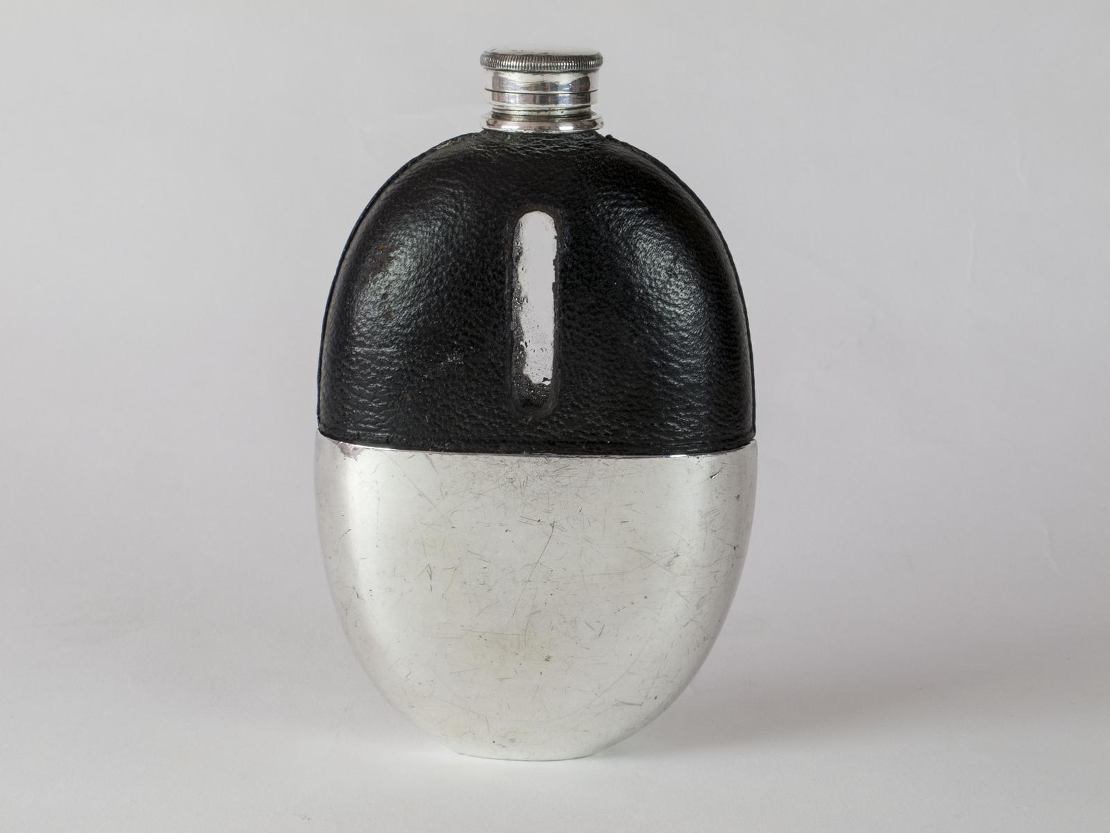 Victorian Black Leather & Silver Plate Hip Flask by W.Hutton & Son