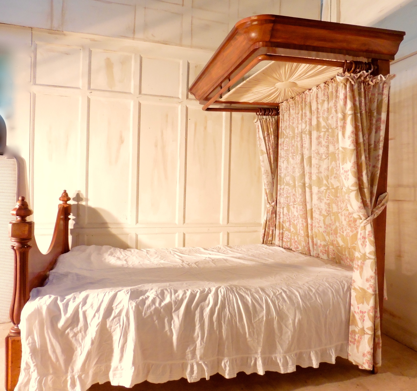Victorian Blonde Mahogany Half Tester King Size Bed