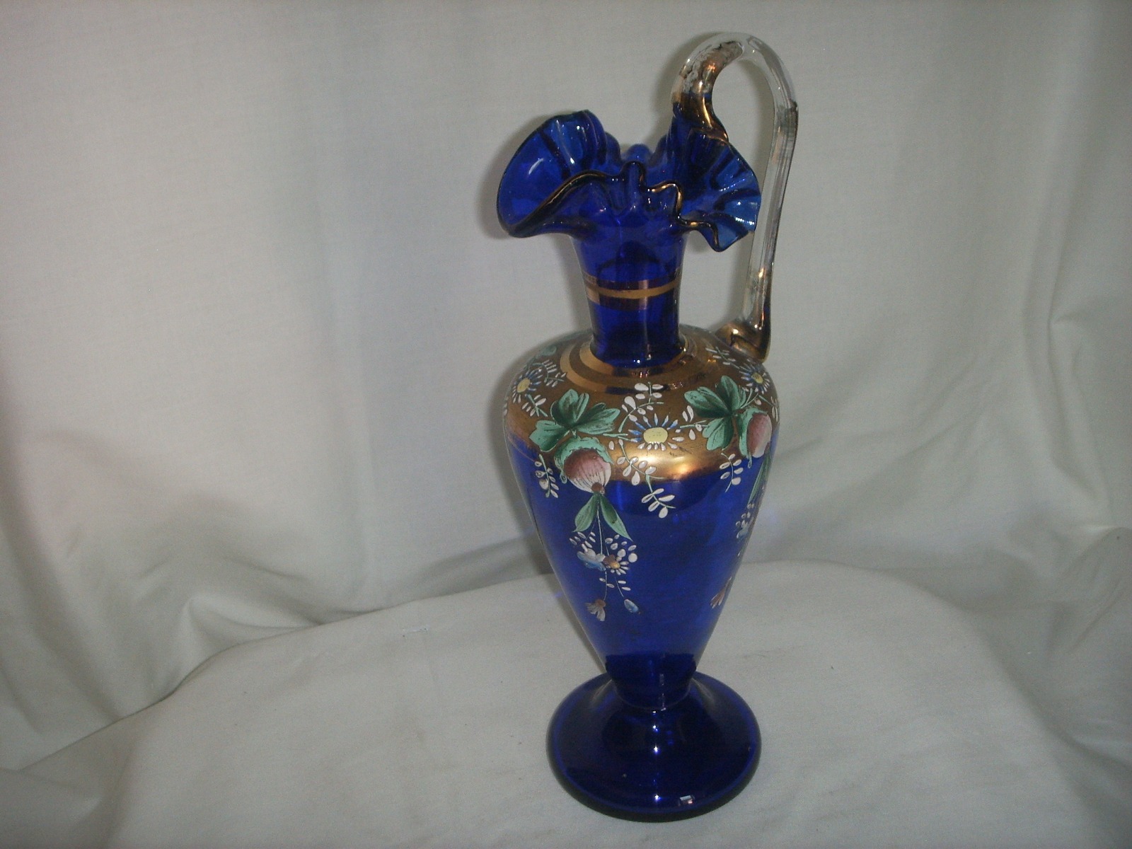 Victorian Blue Glass Jug. Highly Decorated. Superb!