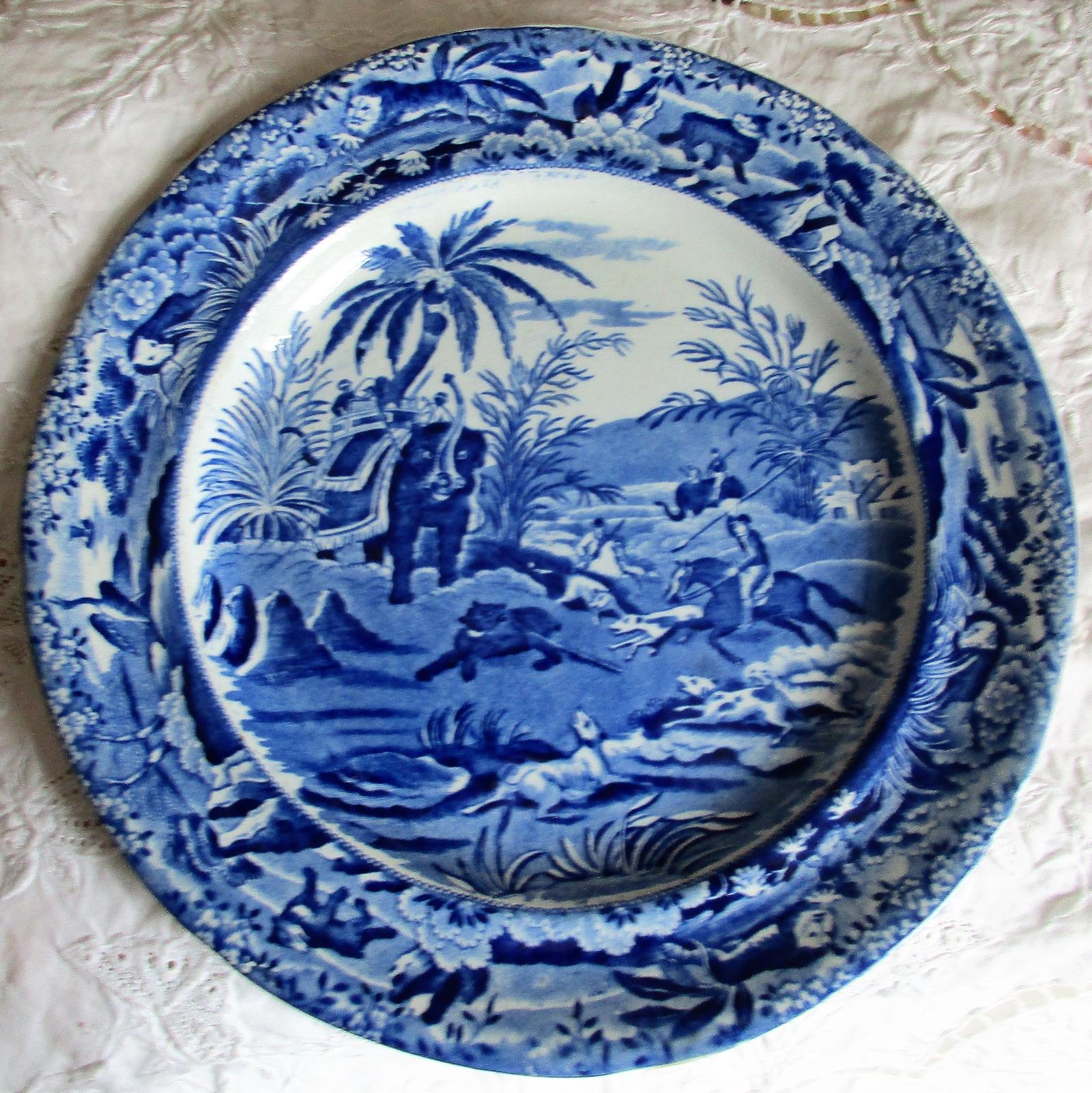 Victorian Blue & White "Oriental Sport" Plate