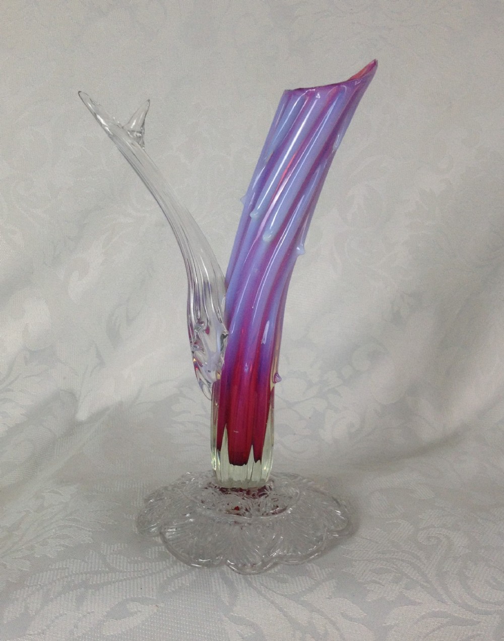 Victorian Bohemian 10" Opalescent Cranberry Pink Thorn Glass Vase (1 of 1)