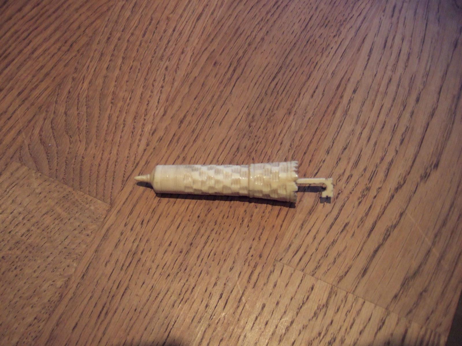 Victorian bone needle case in the shape of a parasol with castellated design (1 of 3)