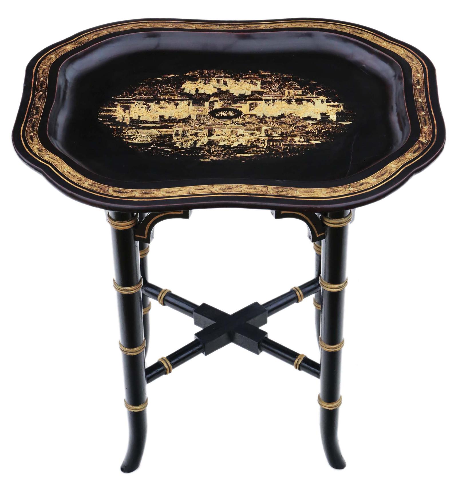 Victorian Boulle Work Papier-mâché Tray on Stand Coffee Wine Table c.1880