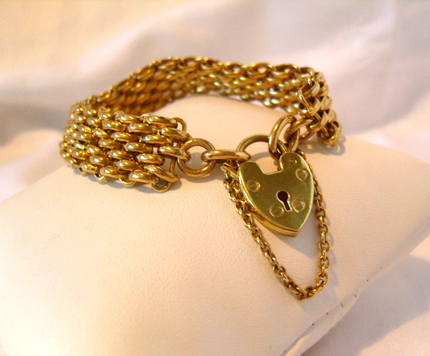 Victorian Bracelet 9ct Rolled Gold Chunky Roller Link & Love Heart Padlock