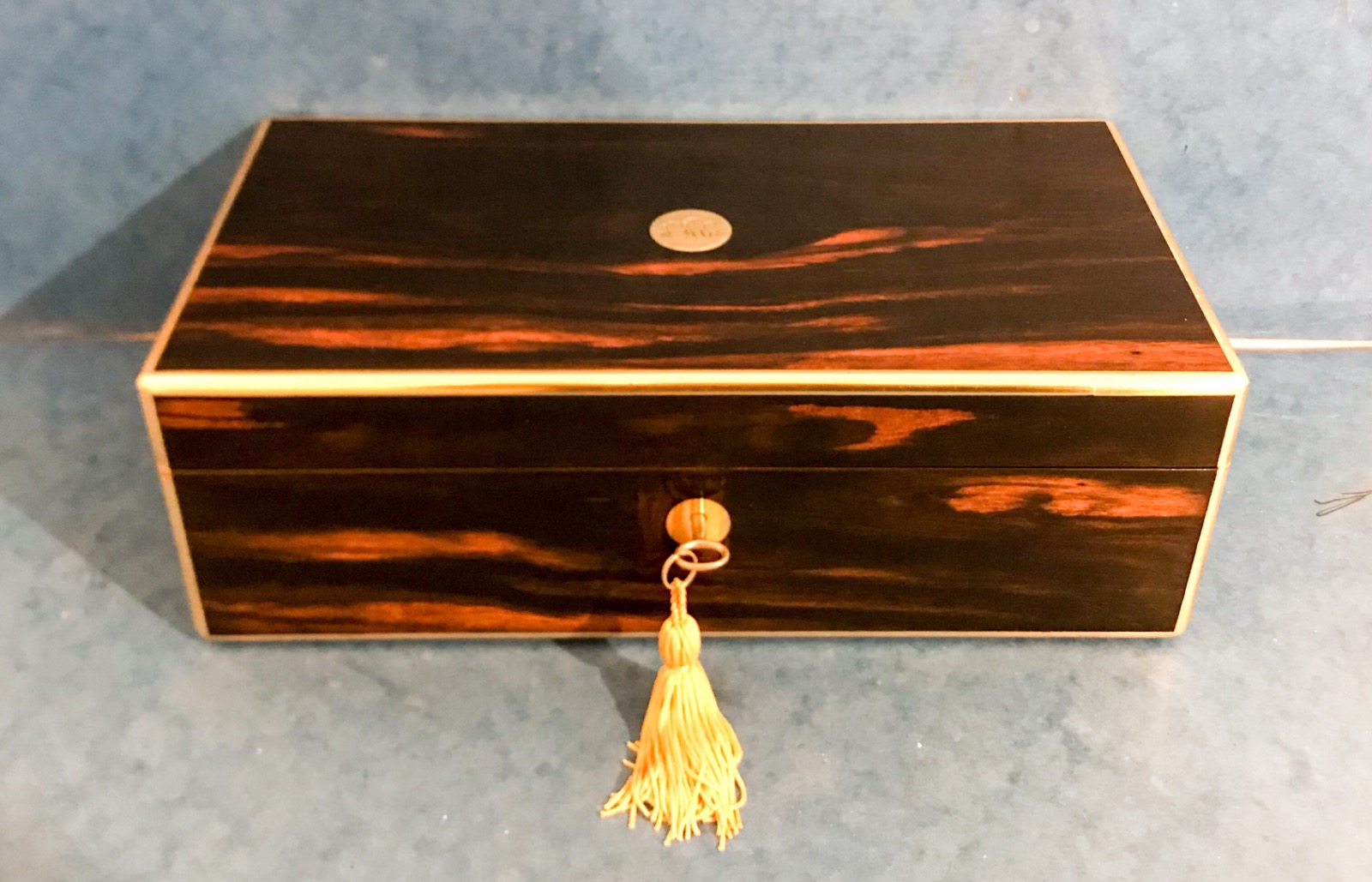 Victorian Brass Bound Coromandel Fitted Jewellery Box c.1840