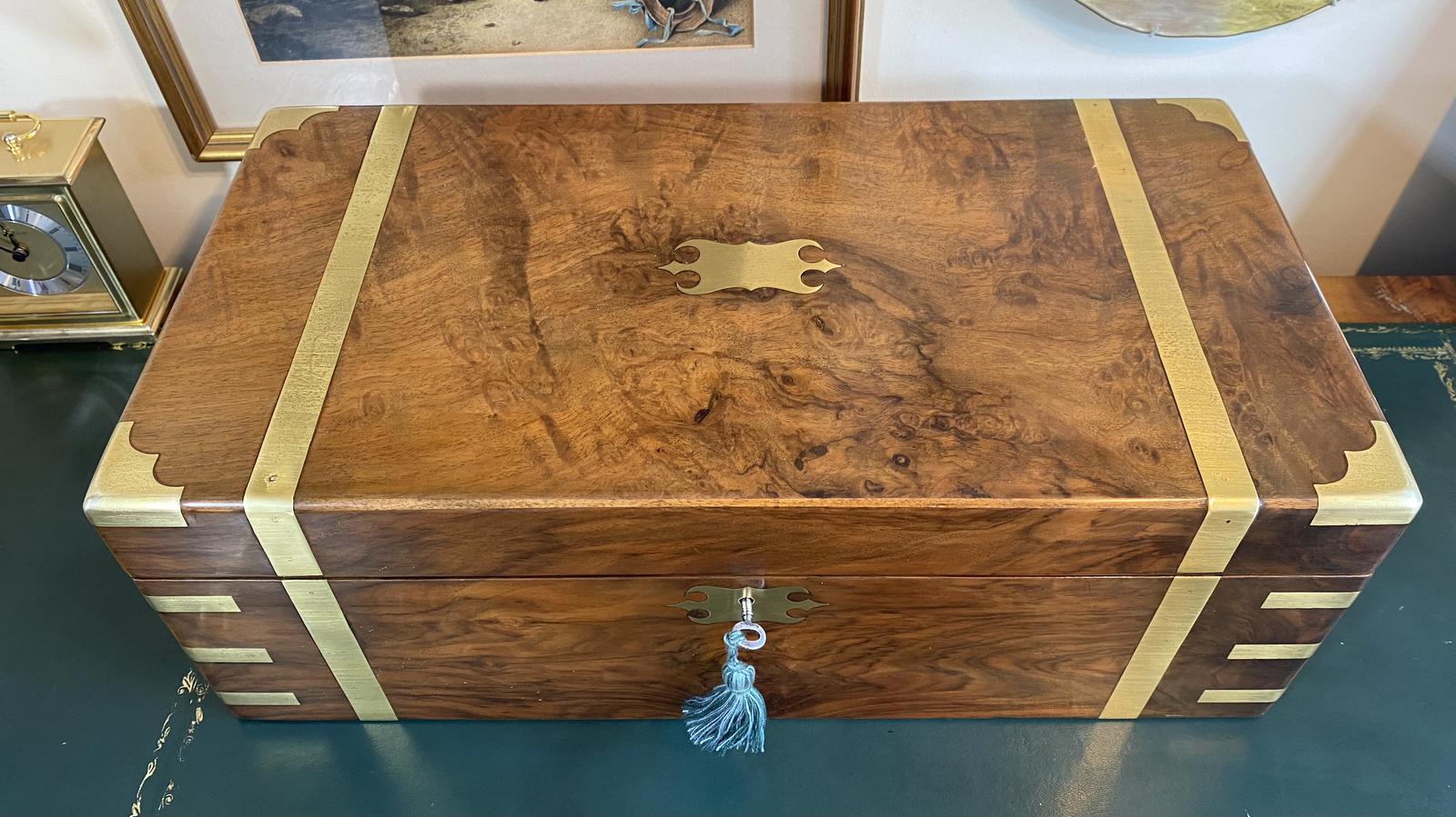Victorian Brass-bound Walnut Writing Slope with Secret Drawers