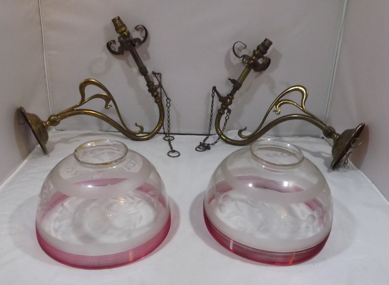 Victorian Brass Brewery Wall Lights Glass Shades