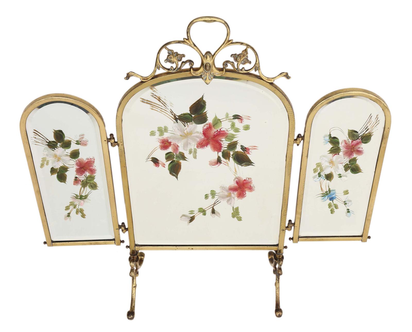 Victorian Brass Decorated Bevel Edge Glass Fire Fireplace Screen
