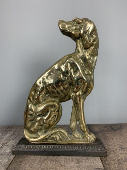 Victorian Brass Dog Doorstop Door Stop on Cast Iron Plinth Door Porter