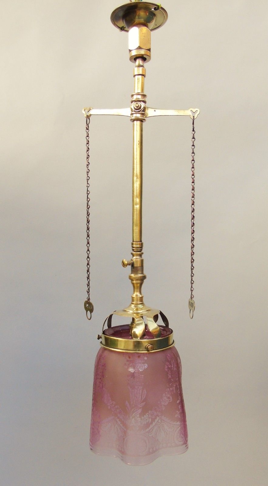 Victorian Brass Gasolier Chandelier Cranberry Glass Shade (1 of 1)