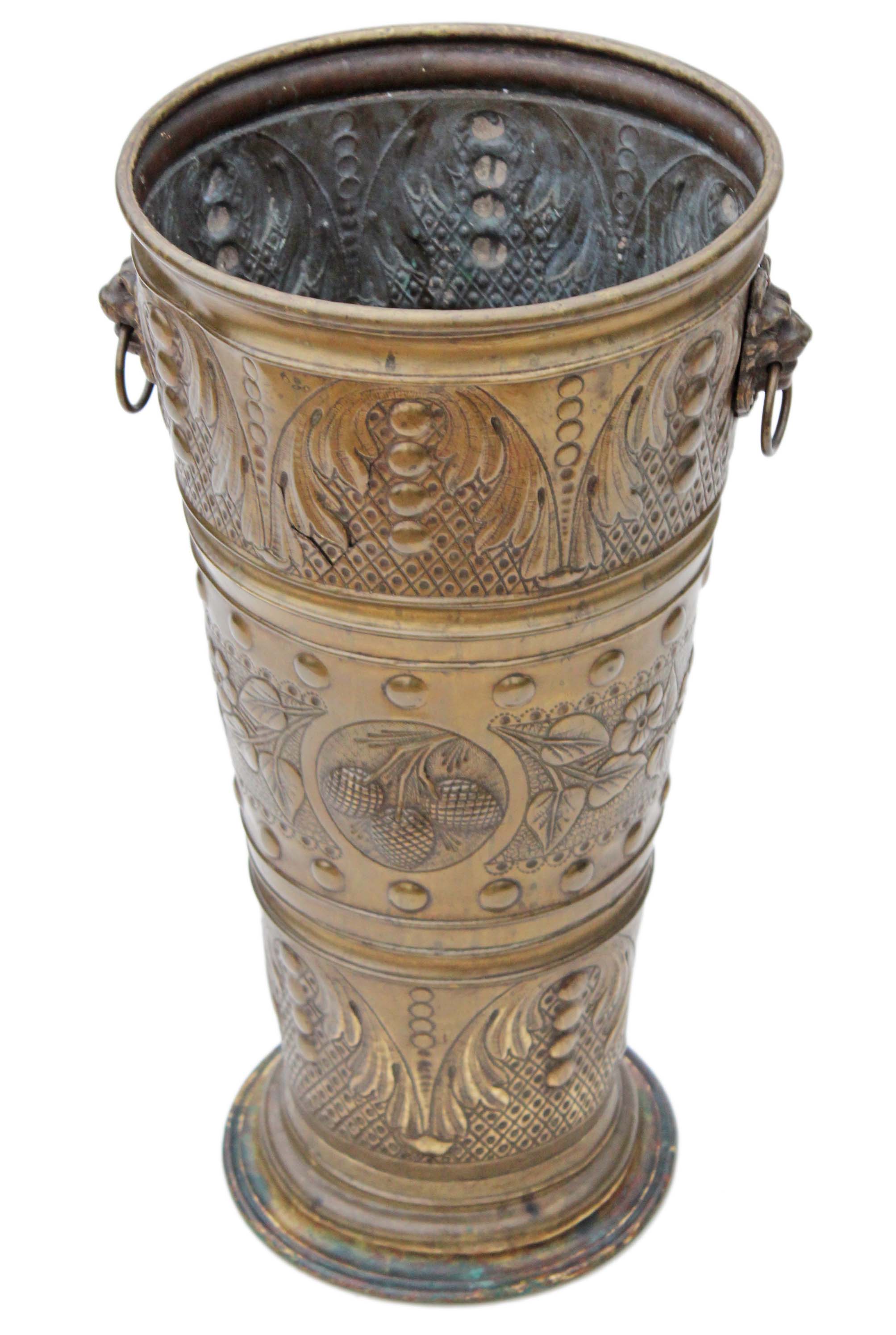 Victorian brass hall stick or umbrella stand bucket