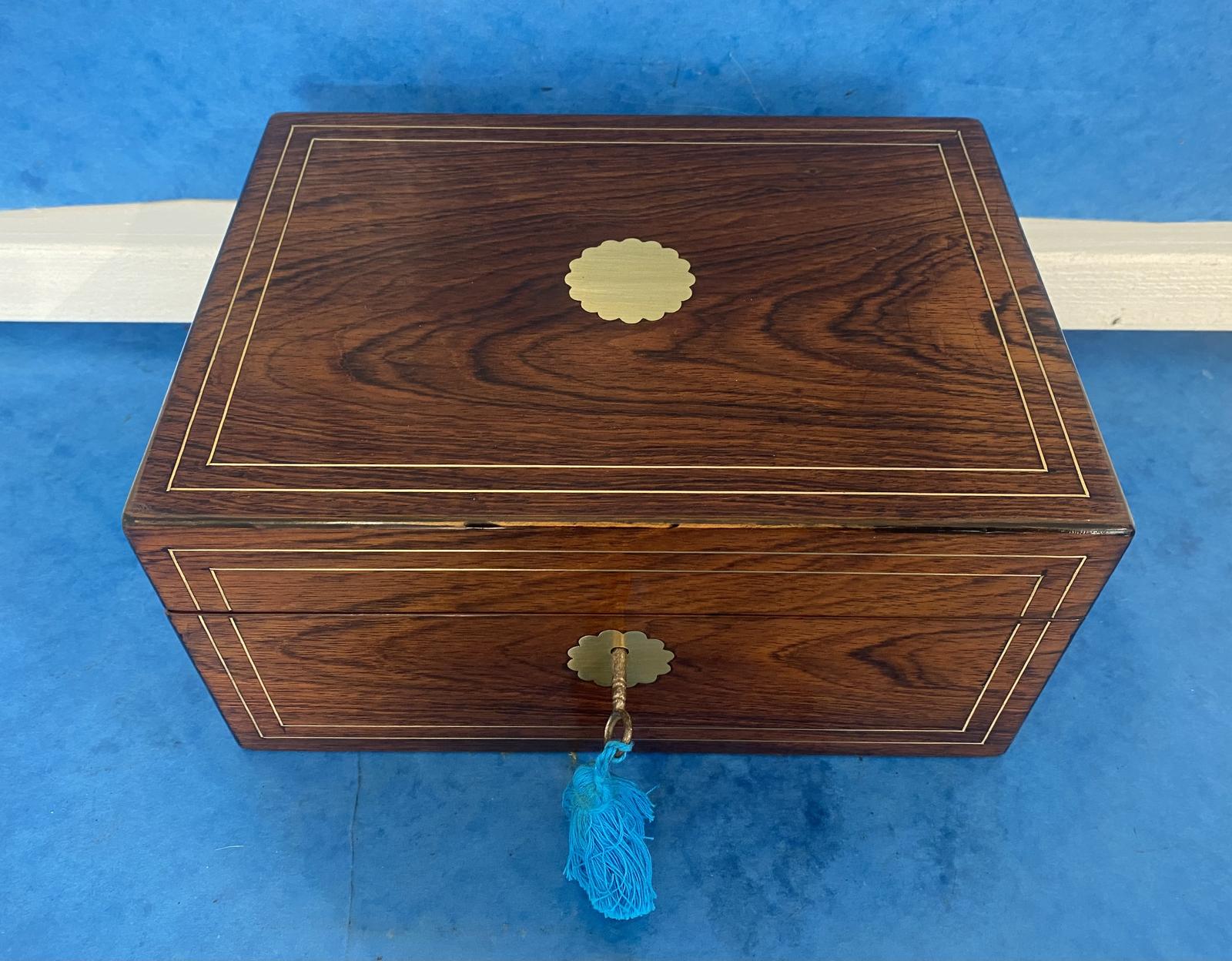 Victorian Brass Inlaid Rosewood Jewellery Box